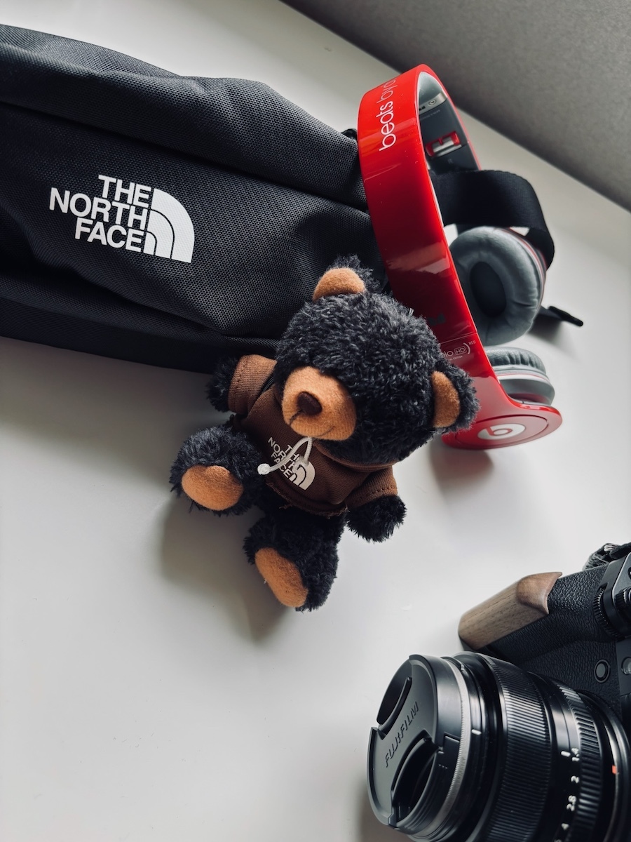 穿上迷你版TNF 帽T,還背著後背包!